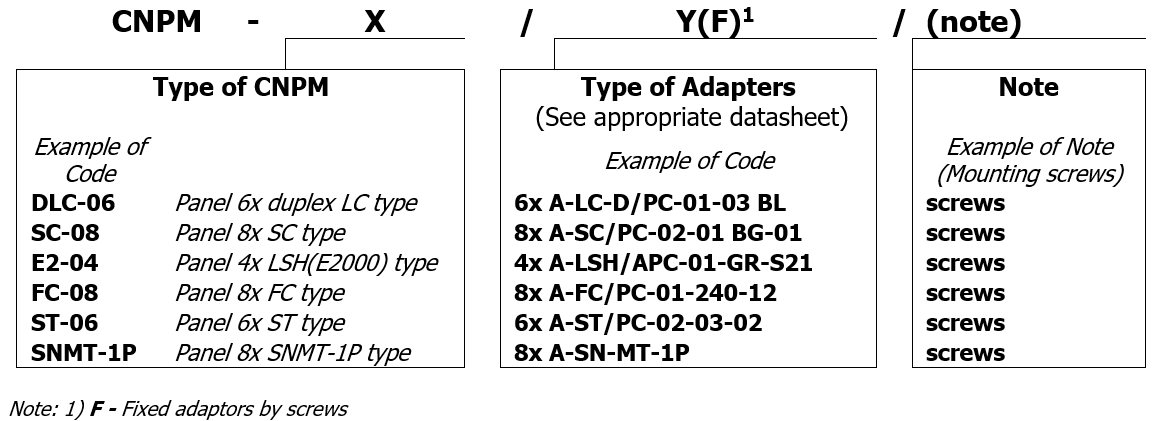 4x, 6x, 8x LSH (E2000) or SC type or Duplex LC type (all is SC footprint) |