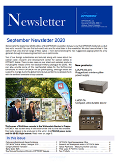 Two of our foreign subsidiaries are featured along with news about the optical cable research and development center for optical cables in OPTOKON Kable. There is also news on our latest and updated products including the release of the new tactical military catalogue for 2020. We can also provide some of the rescheduled dates for the forthcoming exhibitions in which OPTOKON will be participating, although these are subject to change due to the global Coronavirus pandemic, so please check with the exhibitor's website to stay updated.