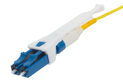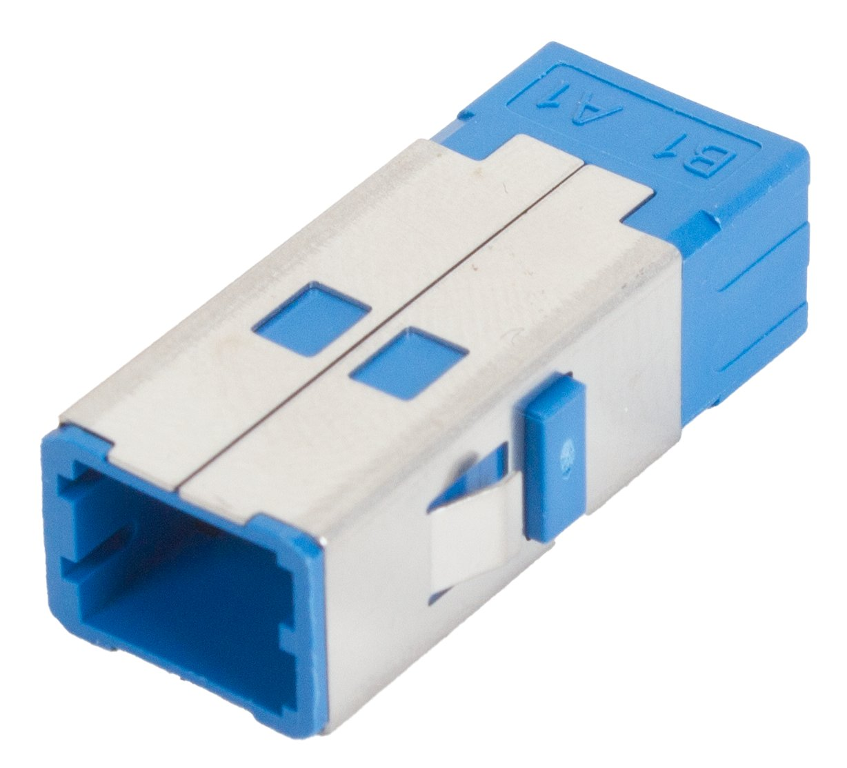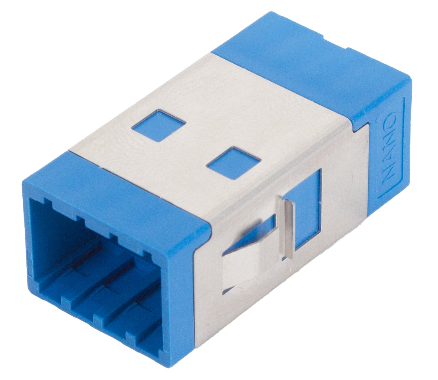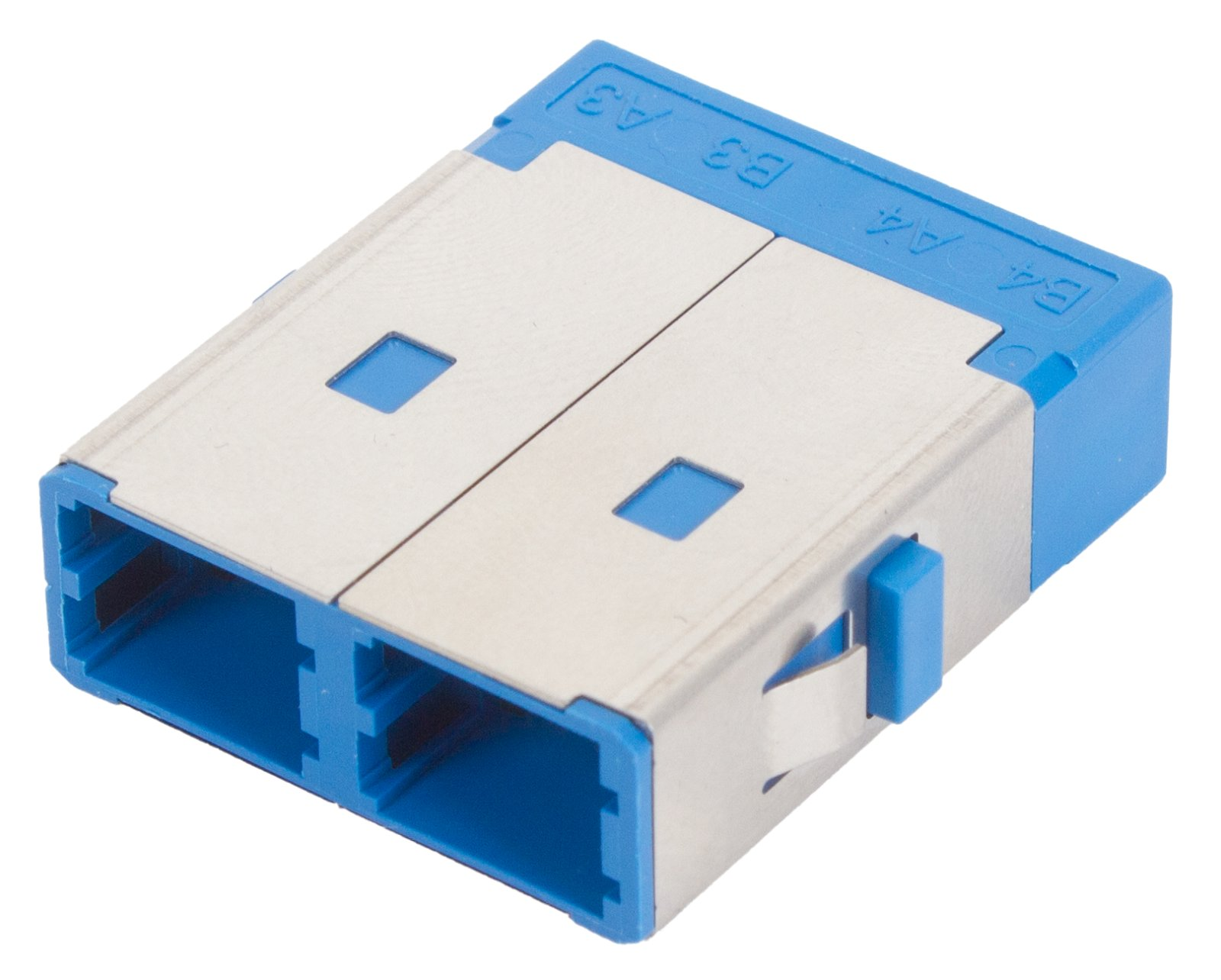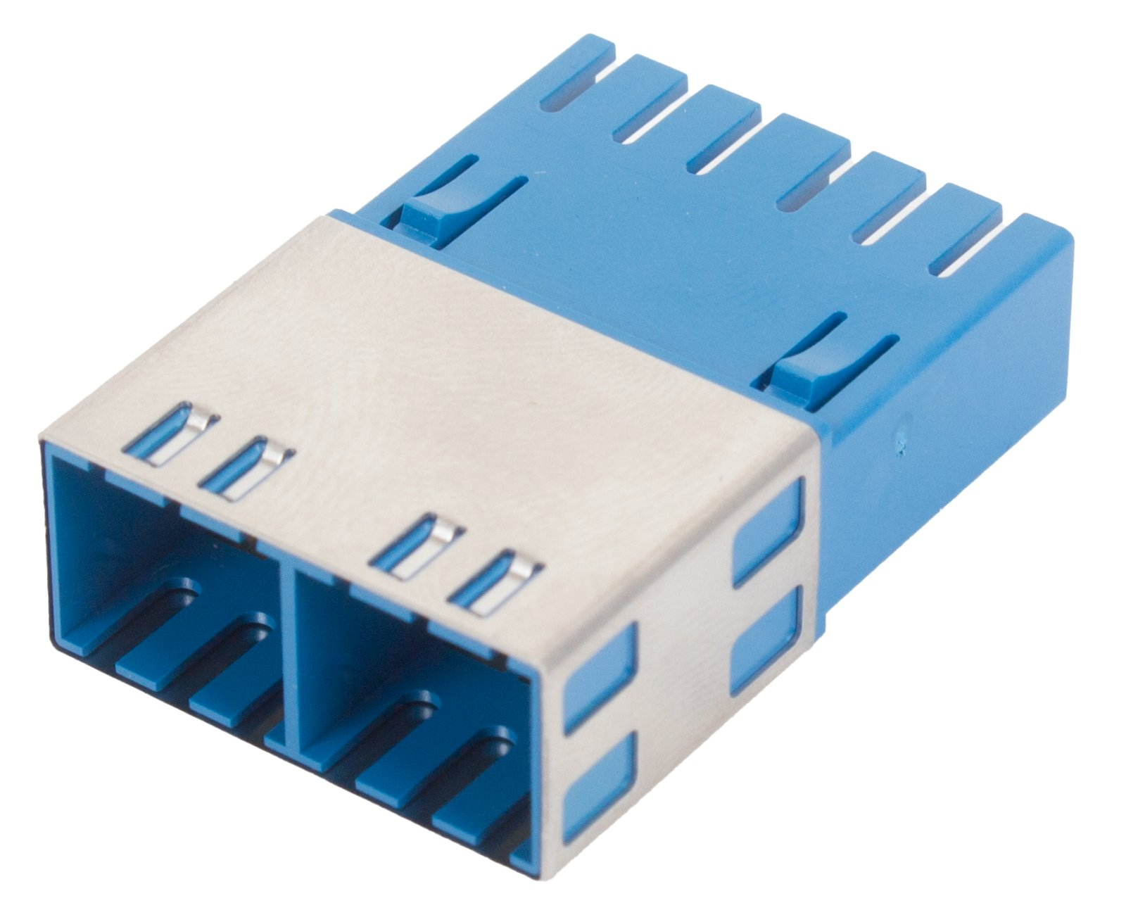 The SN® connector is a new duplex optical fiber connector designed for Data Center 400G optimization. The SN® connector was designed to provide individual and independent duplex fiber breakout at a quad style transceiver (QSFP, QSFP-DD, OSFP) as a more efficient, increased reliability, and a lower cost alternative than the MPO connector. SN® has two LC style 1.25 mm diameter zirconia ferrules in a single housing, pitched 3.1 mm apart vs 6.25 mm in a duplex LC connector.