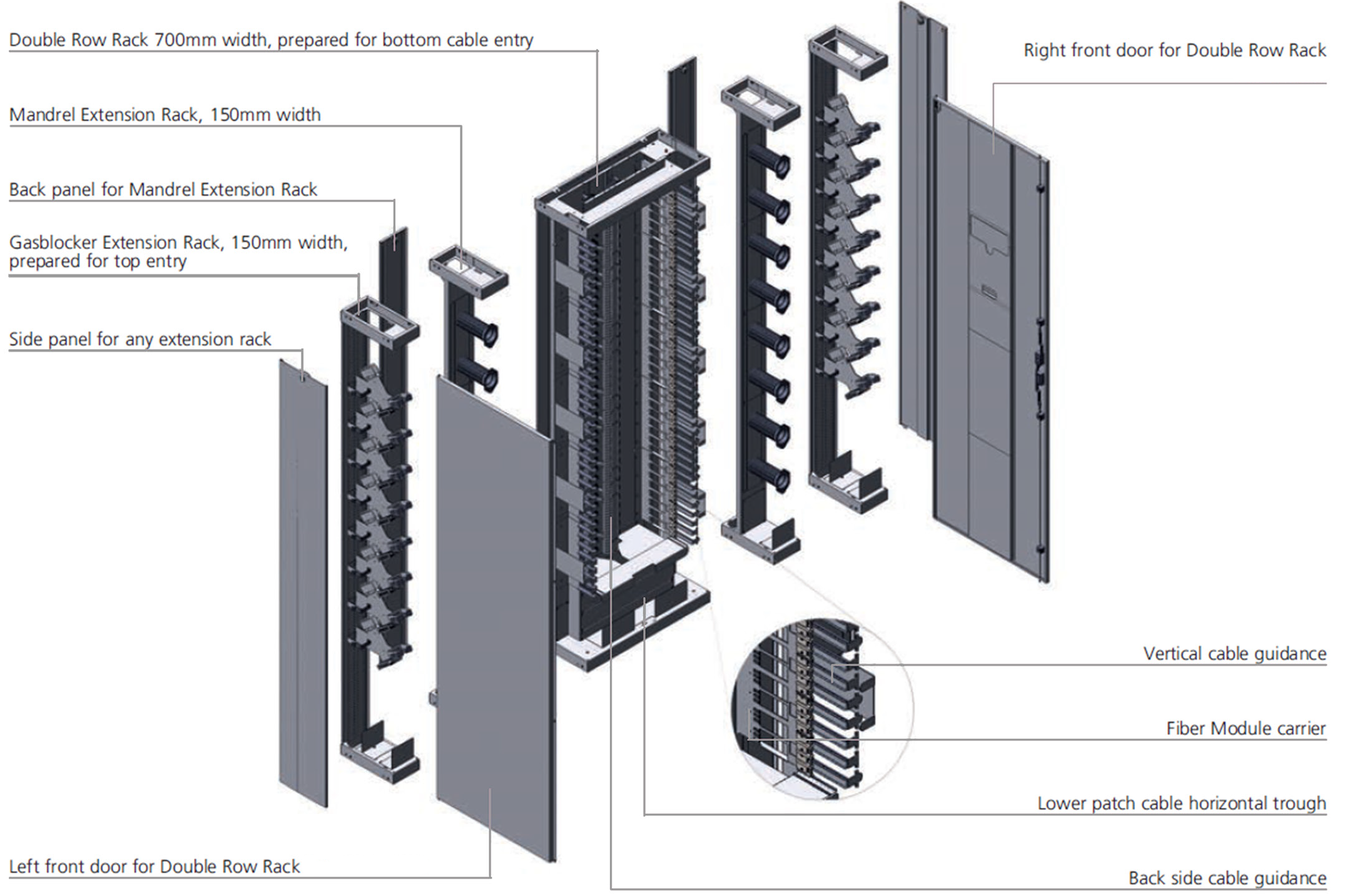 - Mandrels on left and right side of the rack provide sufficient space for patchcord overlength storage