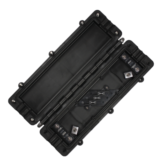 The KSHT-F01 is designed as a compact size, easy installation device for small count of optical cable splice and protection. It can be applied on environments of underground/duct, aerial and wall mount, the selected high strength engineering plastic material to assure superior protection capability from harsh environment such like aging, corrosion.