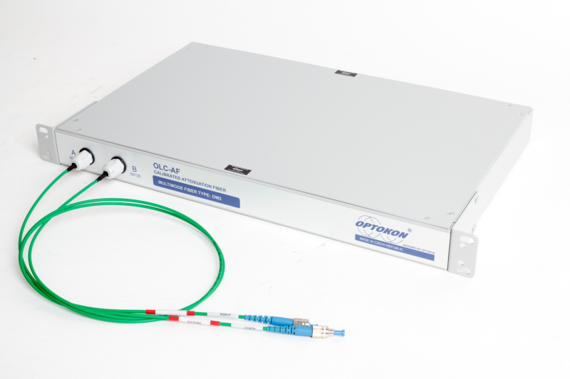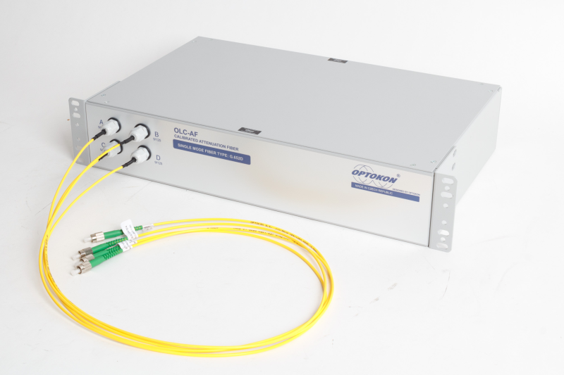 The OLC-AF consists in a fiber spool of a defined attenuation at required wavelength, which is installed in a thermally shielded rack mount optical distribution frame for better stability. The reference fiber is fitted with two APC connectors for single mode and PC connectors for multimode. The attenuation is calibrated at 1310 nm for SM or at 850 nm for MM.