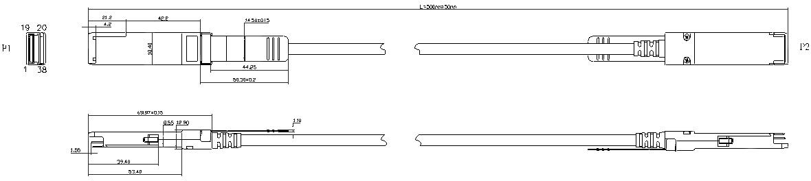 - Hybrid cable conforms to the Small Form Factor SFF-8436