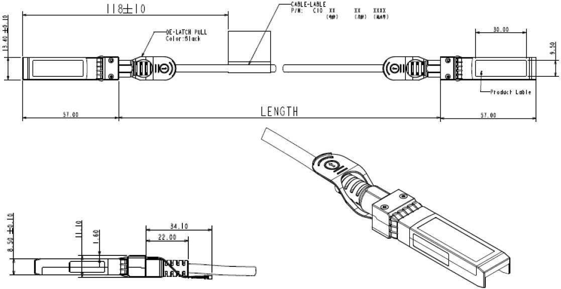 The S25G-SP28-DAC cable consists of a single high-speed copper pair capable of operating at speeds up to 25 Gbps. It complies with the IEEE P802.3 Ethernet standard andthe SFF-8402 SFP28 standard. Each SFP28 connector includes an EEPROM that stores product information accessible to the host system.