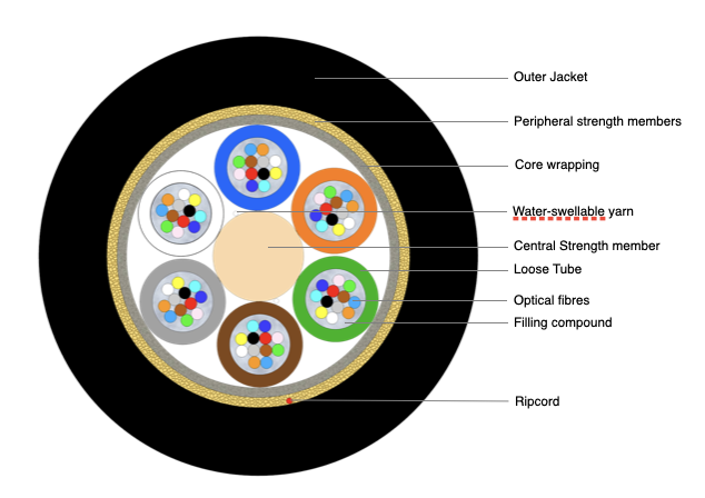 | Peripheral strength members | Water-swellable kevlar yarns |