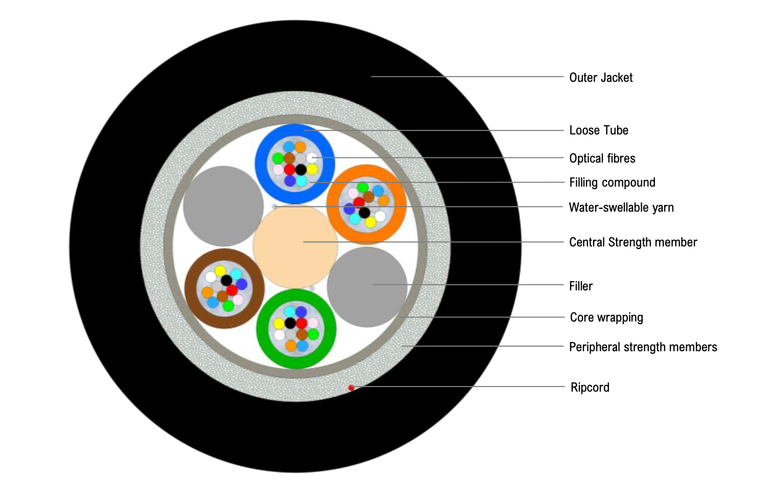 Peripheral strength members Double layer of Water-swellable glass yarns