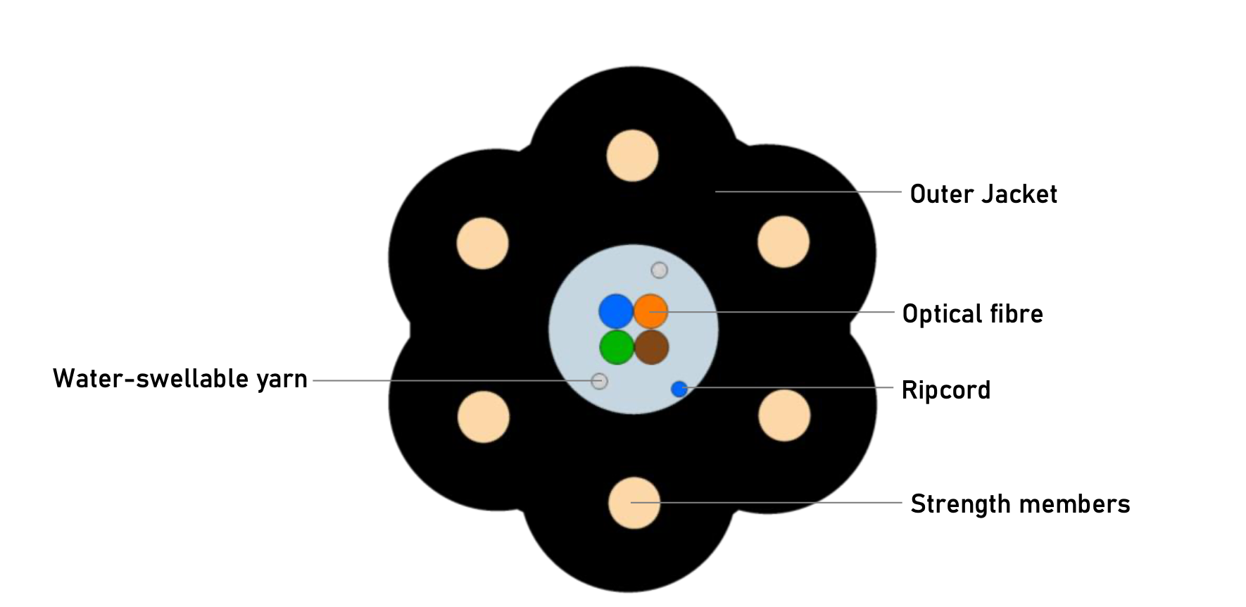 | Outer jacket | UV resistant black HDPE with chemical protection against rodents and termites |