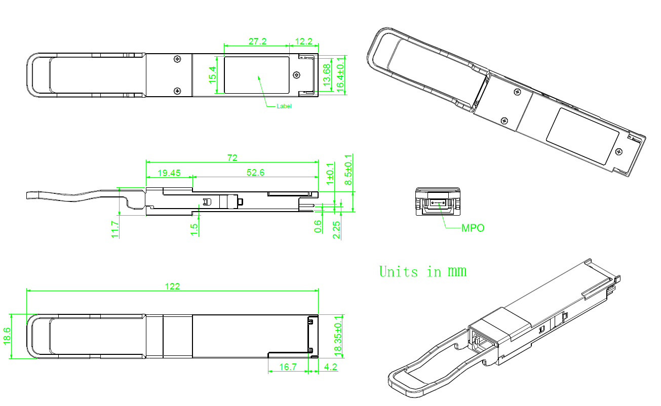 QSFP28 SR4 100 Gbps Rate Transceiver, 150m on MM OM4