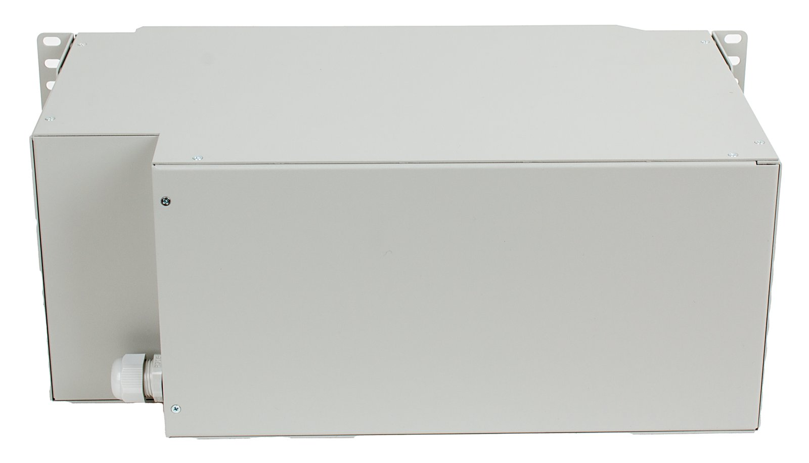 The incoming cables are connected to the rear panel of the unit using a PG cable gland, which helps the MCNP-xAP meet the IP41 rating. The pivoting shelf on the panel can be equipped with either a splice tray holder or bend radius protection to guide, store, and organize excess slack. This helps prevent damage to fibers before they are routed into couplings.