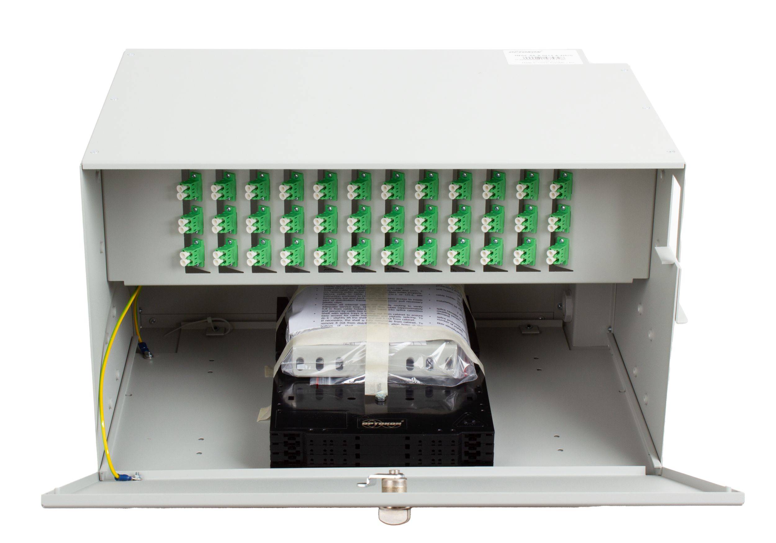 MFDC-xA Connector Network Panel is the optical distribution frame that can be mounted on a 19” rack. It is designed for splicing pre-made pigtails, pre-terminated cables, and connectors that can be installed on site. The cabinet is made from a lightweight and solid aluminum-magnesium alloy, which makes it easy to handle during installation and operation and also helps keep transportation costs low.