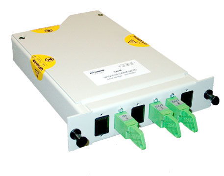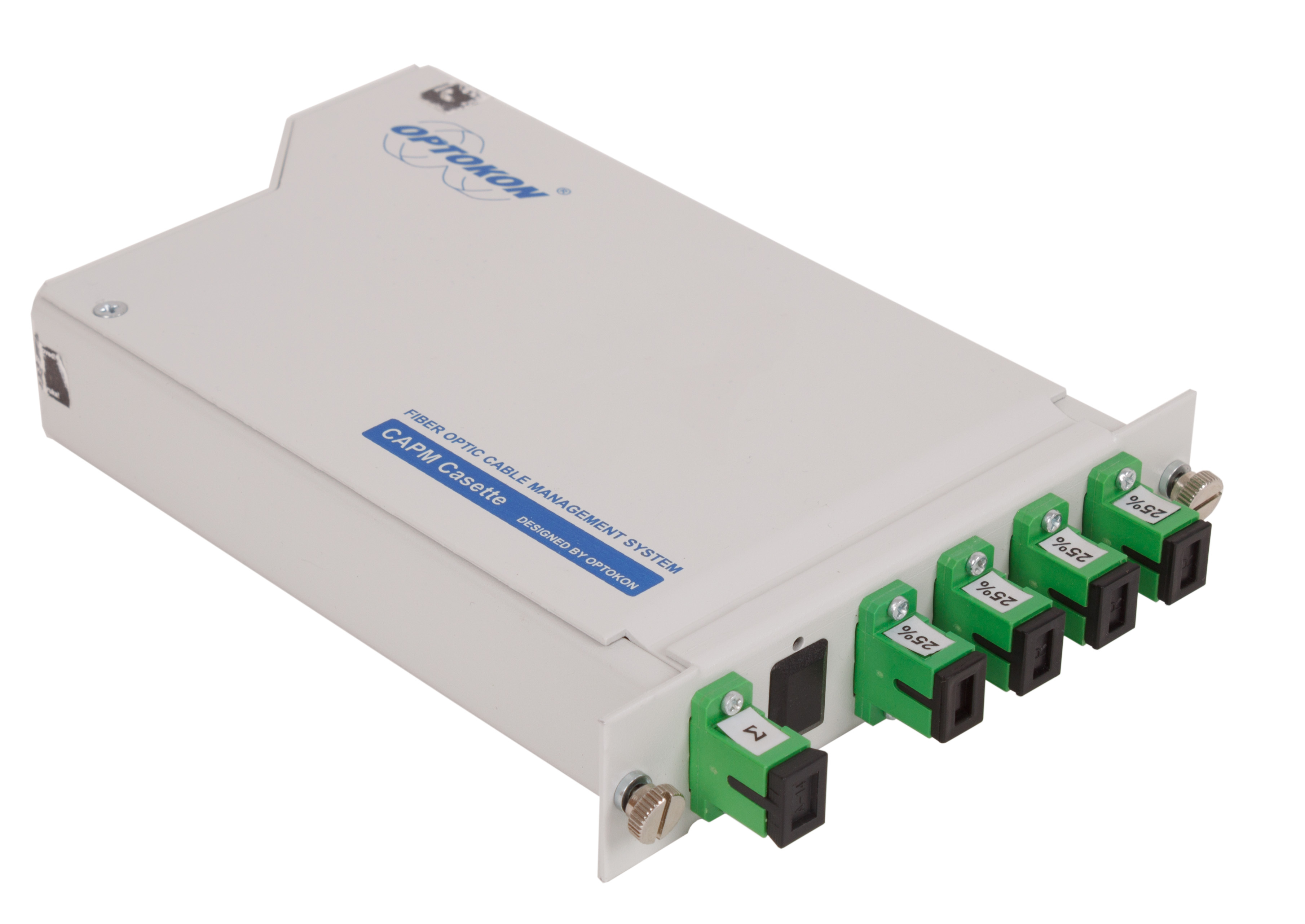 The OPTOKON CAPM cassette offers a convenient and much more reliable alternative to unprotected pigtail splicing or field termination. The CAPM cassettes accept passive fiber optic components such as attenuators, couplers/splitters, WDM and CWDM multiplexers, filters, circulators and many other networking devices. As the fiber optic components have been installed into the CAPM cassettes it is possible to include them into fiber optic networks by using the standard system of Optical Distribution Frames without any need for special distribution frames.