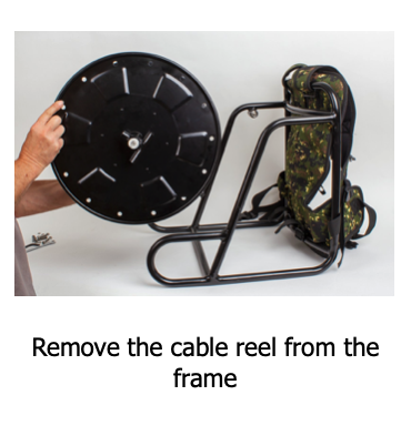Primarily the RBD-500-BF shoulder wear cable drum is designed for use with tactical LD cable terminated with HMA connectors. The drum is made with a third flange allowing full access to each end of the cable assembly. The smaller part of cable reel can accept about 15 – 20 m of internal end of cable. Remaining part of up to full cable length is wind at main cable reel. The panel between both is equipped with hole, which allows removing both cable sides with HMA connector out from the drum.