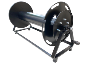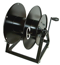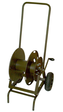 Heavy duty drum with direct crank rewind permanently attached to the axle. Designed for installation on military vehicle or TBD-500 type trolley suitable for mobile applications.
