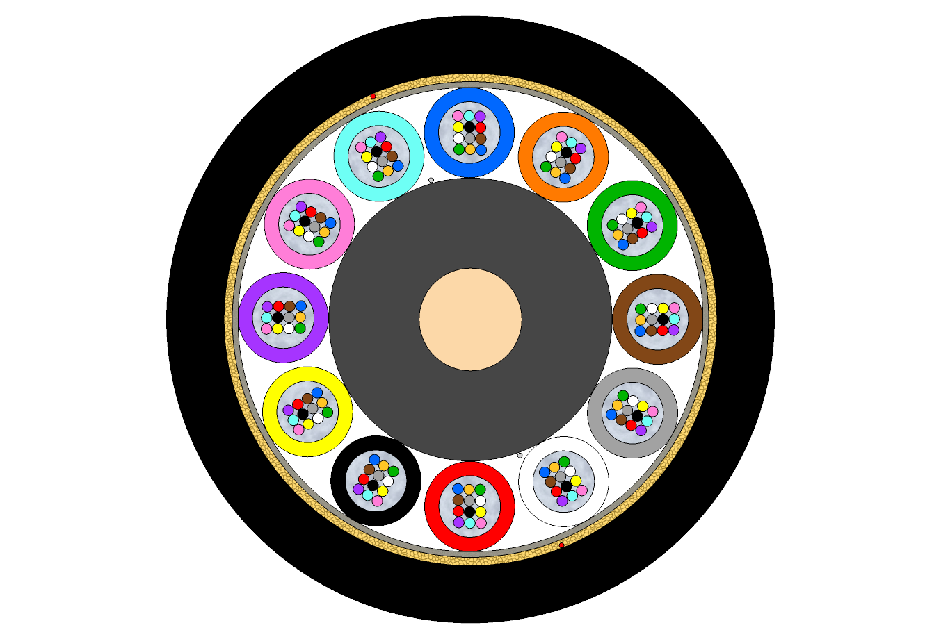 Peripheral strength members Water-swellable glass yarns