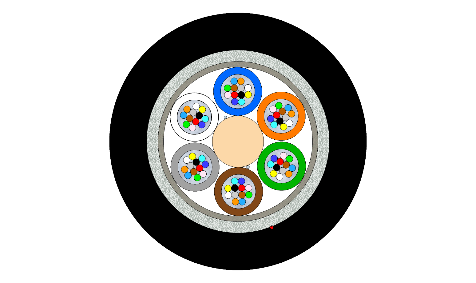 Peripheral strength members Double layer of Water-swellable glass yarns