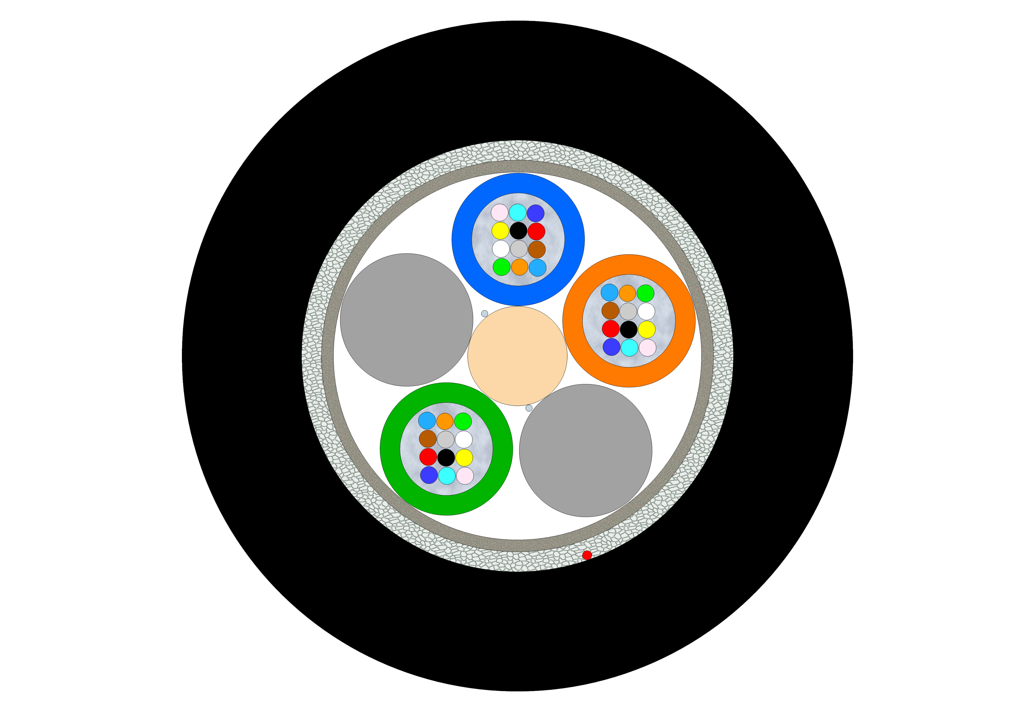Full dielectric cable for external installation on cable trays or into duct by pulling