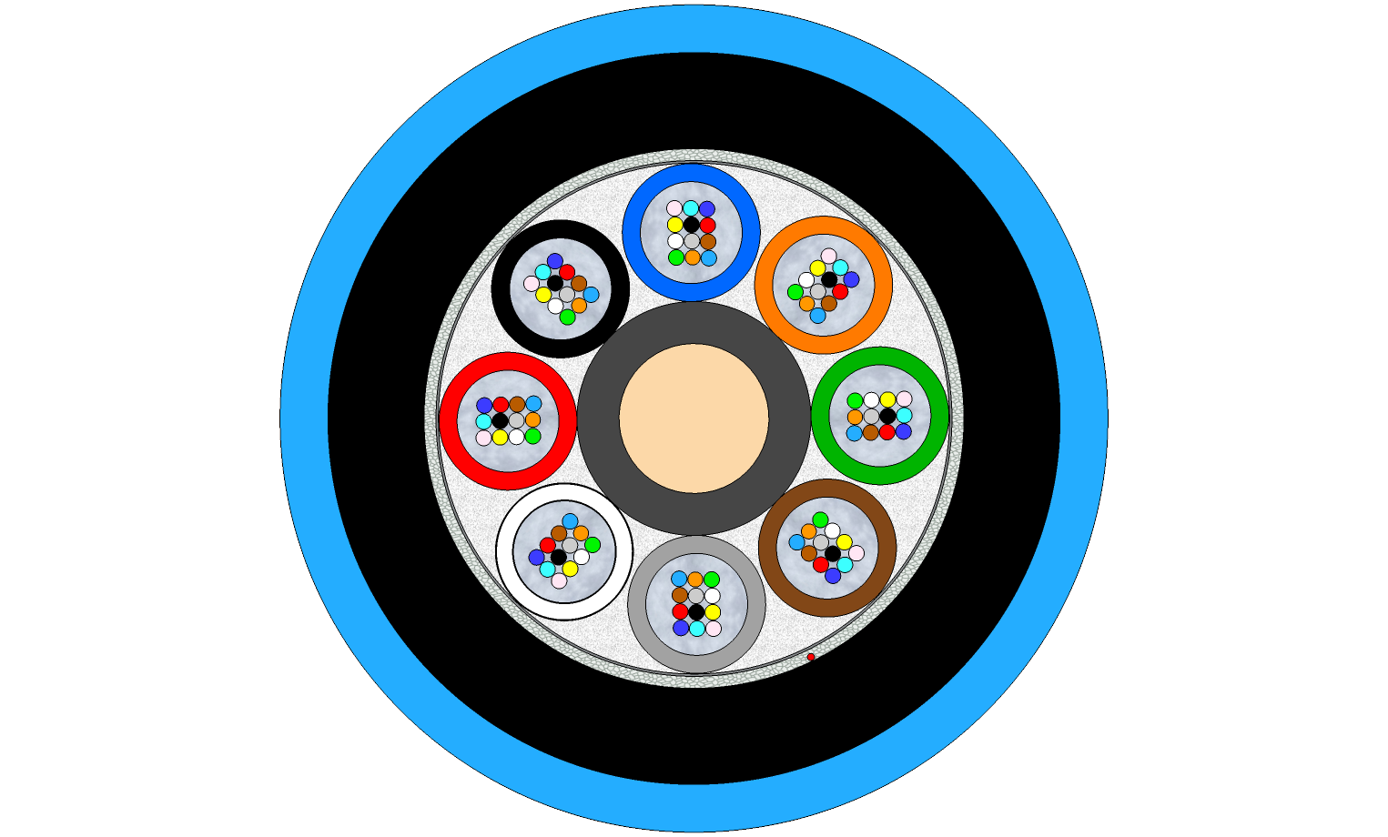 | Peripheral strength members | Water-swellable glass yarn |