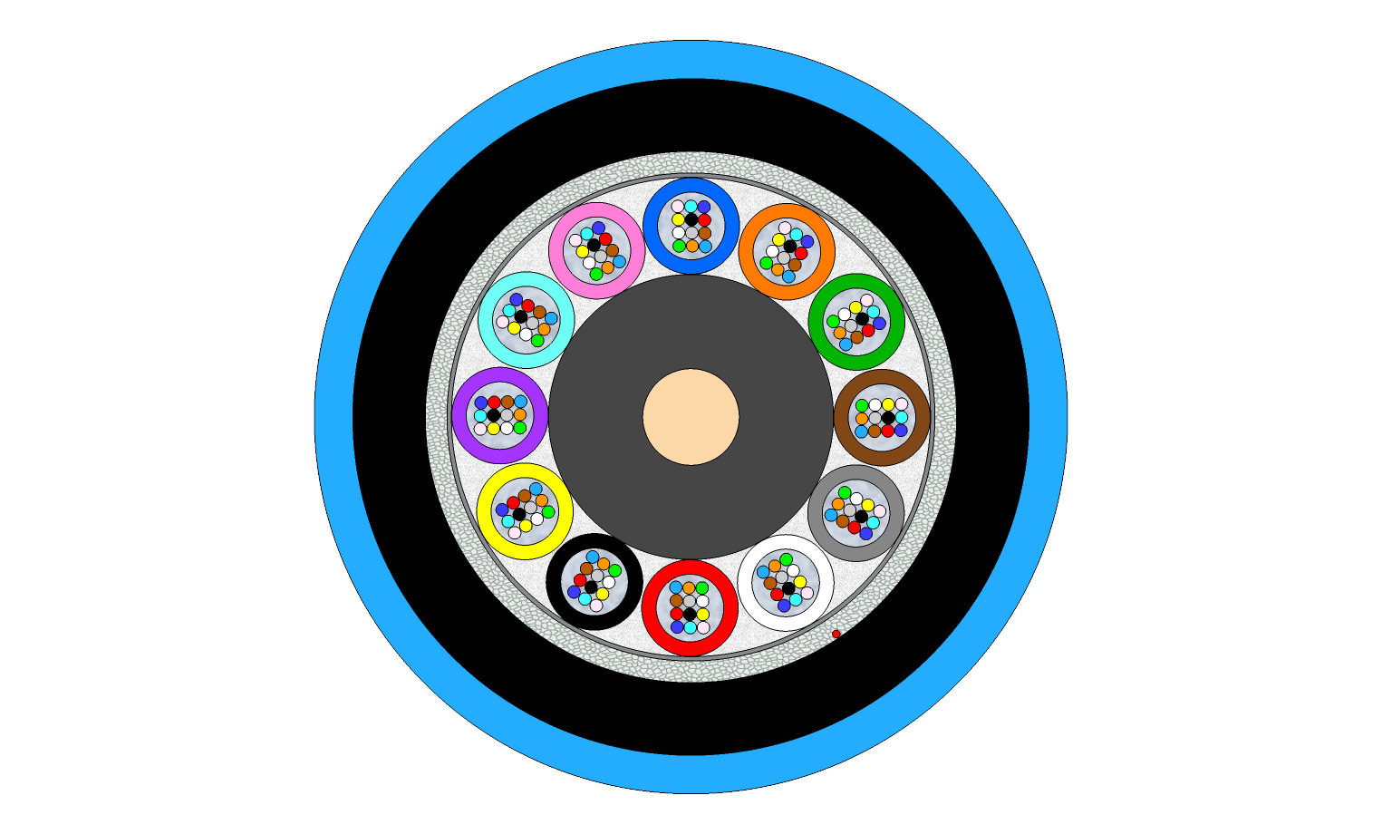 | Peripheral strength members | Water-swellable glass yarn |