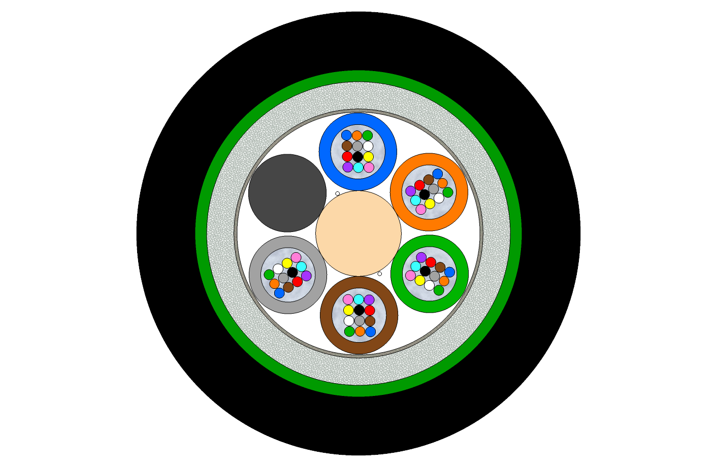 | Outer jacket | Black UV resistant halogen-free flame-retardant thermoplastic compound |