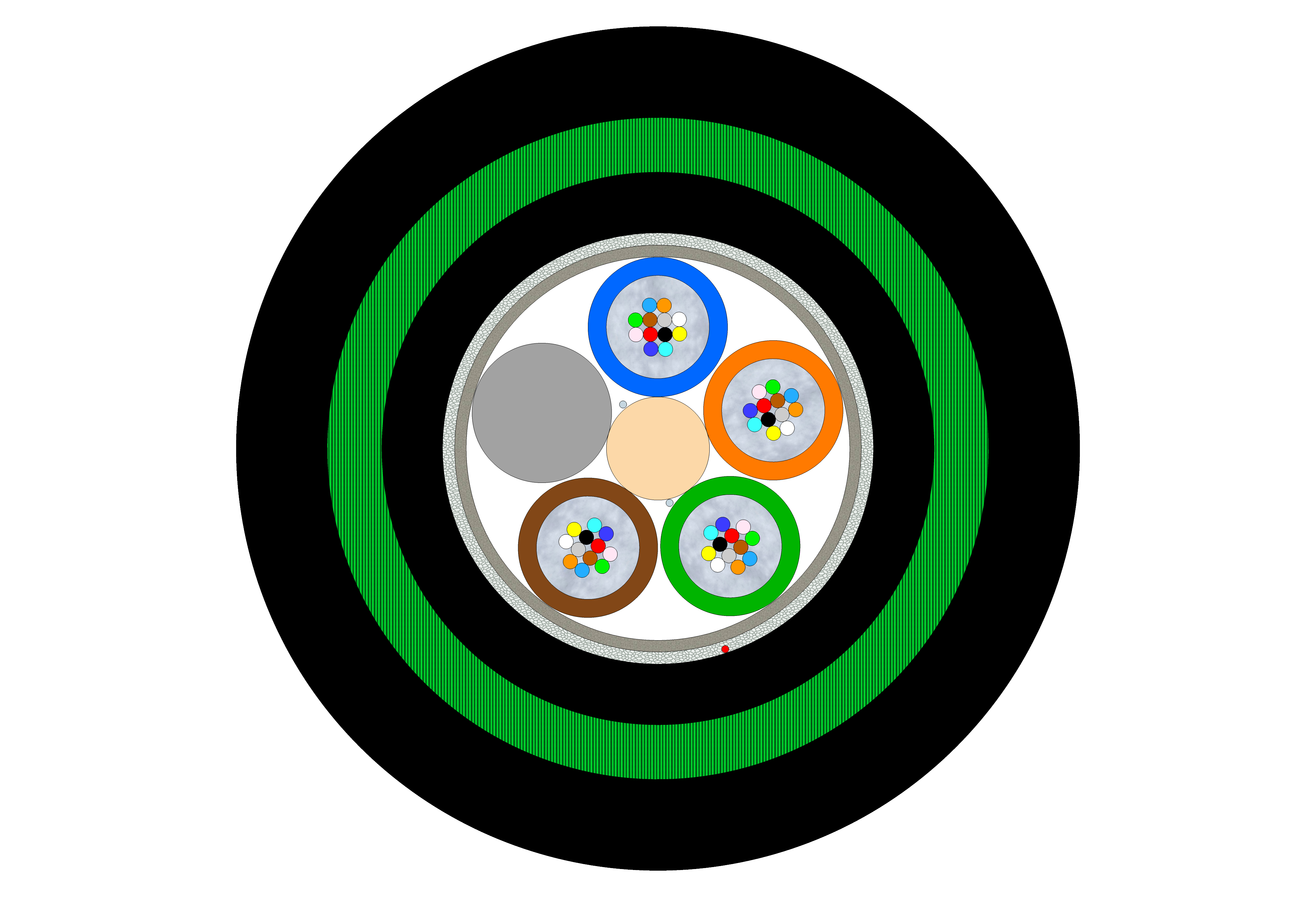 Fibre optic cable with full protection against rodents for direct burial installation.