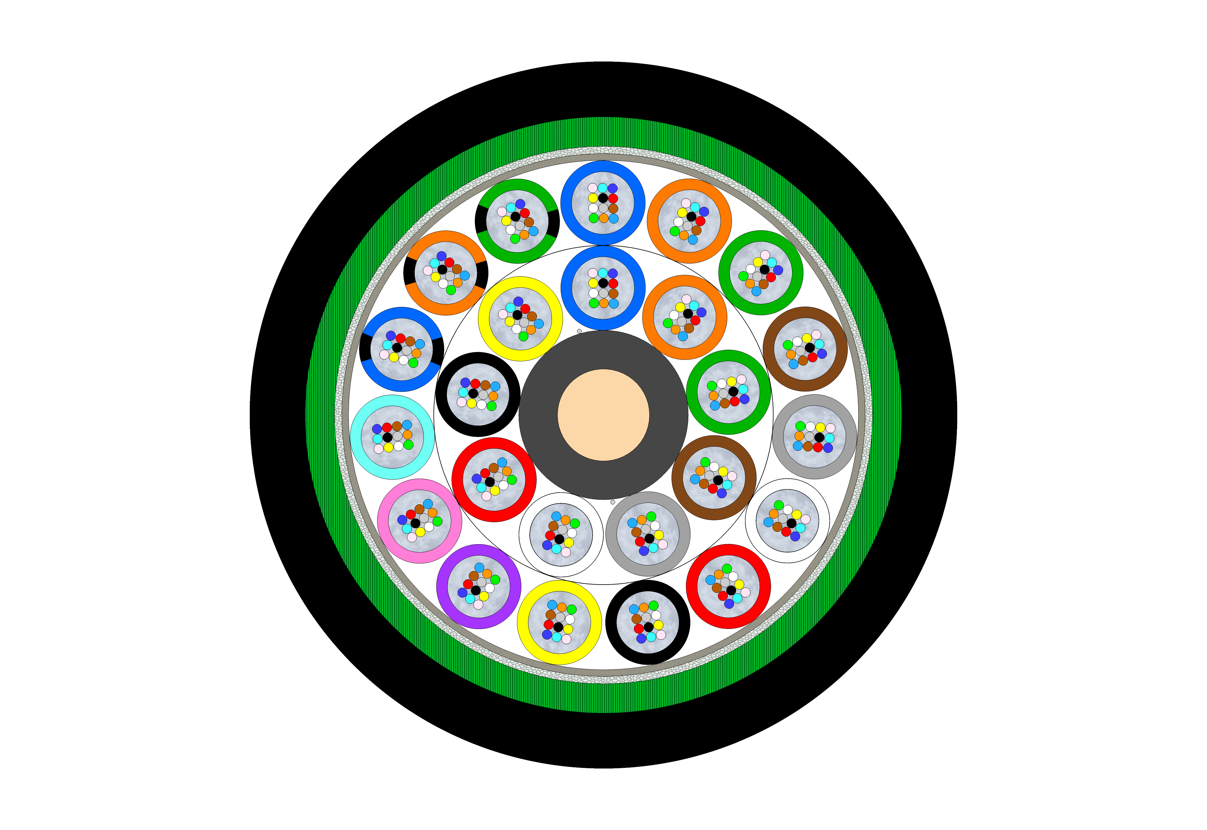 Fibre optic cable with full protection against rodents for direct burial installation.