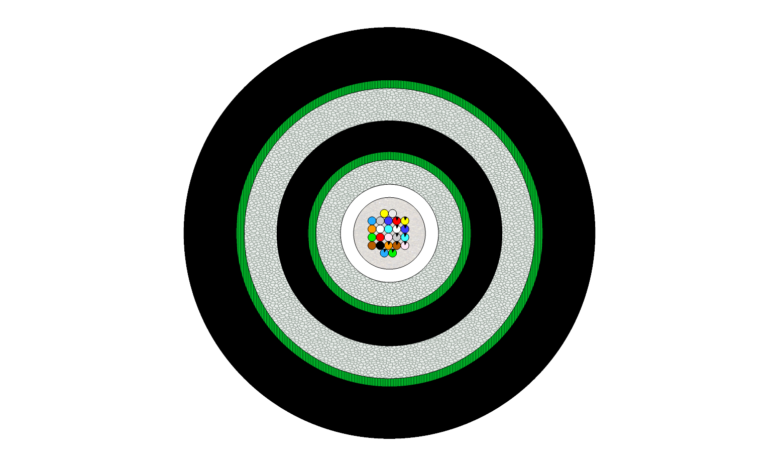 Fibreoptic cable with full protection against rodents for direct burial installation.
