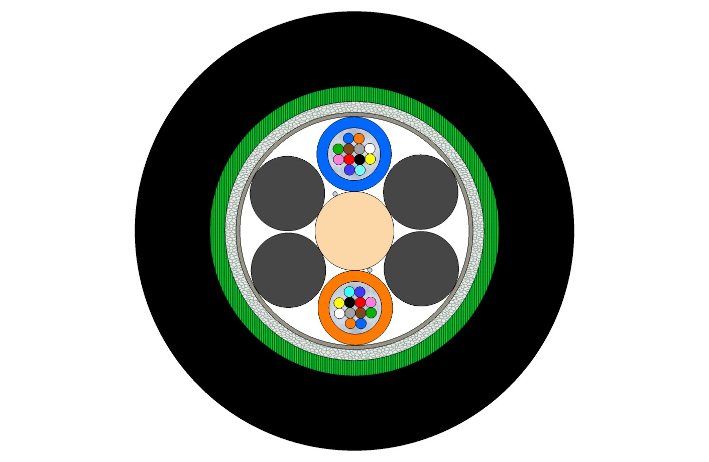 Fibre optic cable with full protection against rodents for direct burial installation.
