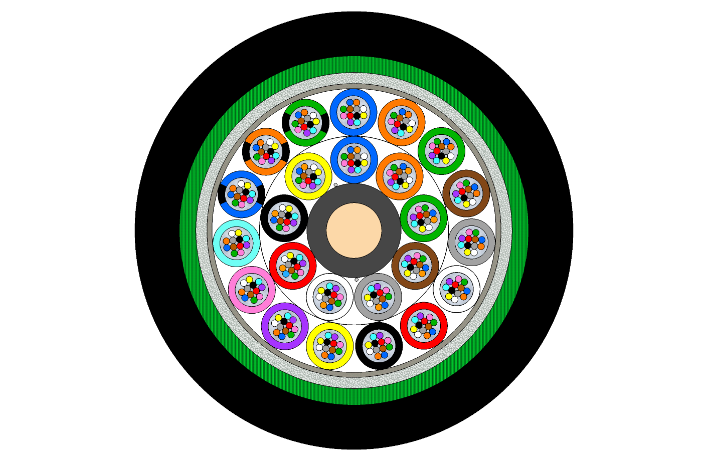 Fibre optic cable with full protection against rodents for direct burial installation.