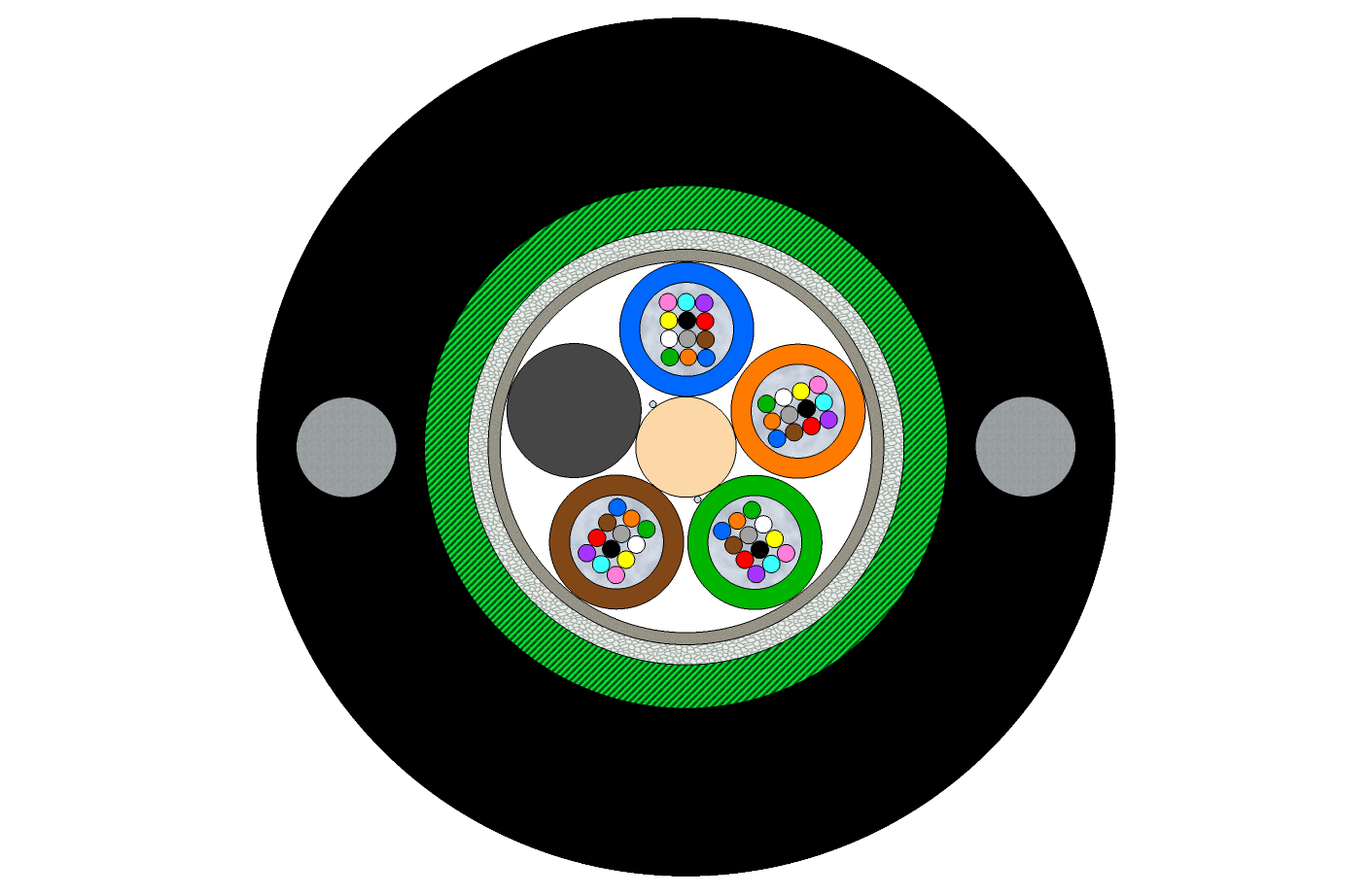 Fibre optic cable with full protection against rodents for direct burial installation.