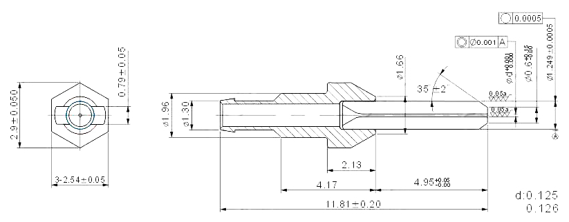 Outer diameter of ferrule Standard connectors: 2.499 µm